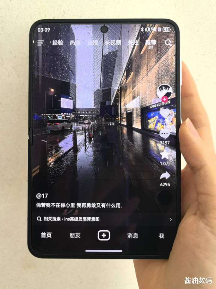 用鸿蒙版抖音刷竖屏短视频时,画面几乎铺满了整个屏幕,可视面积比普通手机大不少,沉浸感拉满。